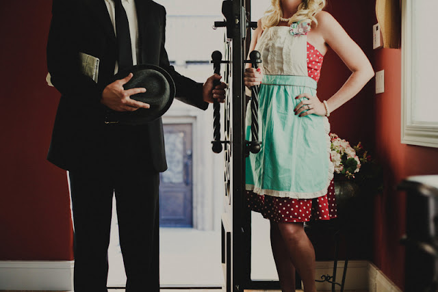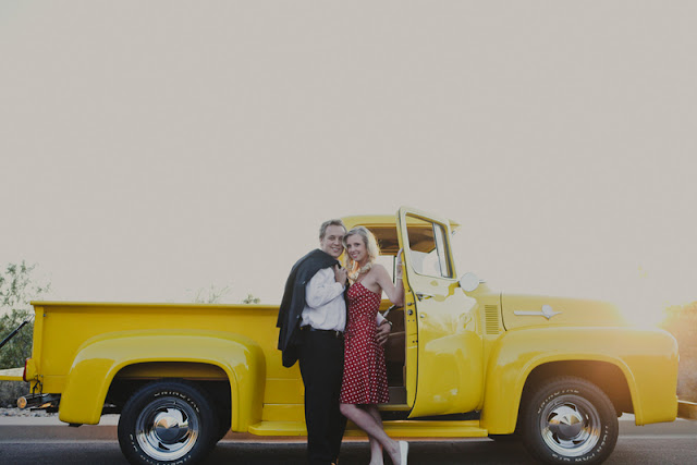 I love when I get submissions from Session Nine Photography, because I know the photos are going to be fabulous, and this session is no different. This couple wanted to incorporate a 1950’s vibe into their engagement session. Between the wardrobe, the vintage yellow truck, and their take on the 1950’s housewife, I’m totally digging it!