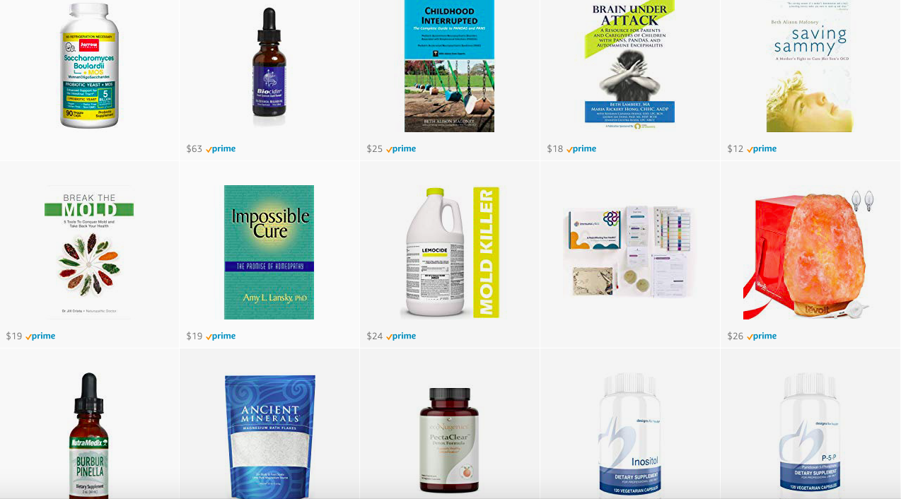 You can find a collection of products that we’ve found helpful or that have been recommended by our healthcare providers regarding treating PANS/PANDAS, Lyme, and mold here.